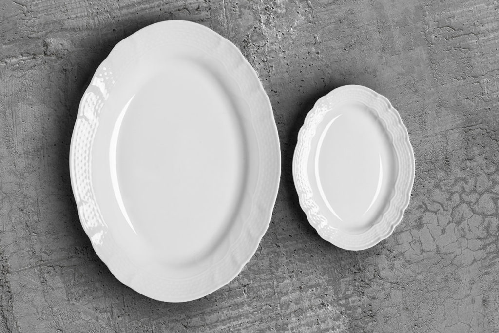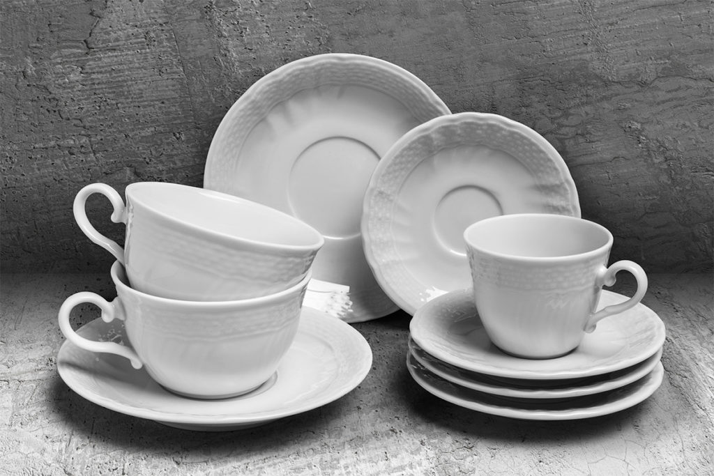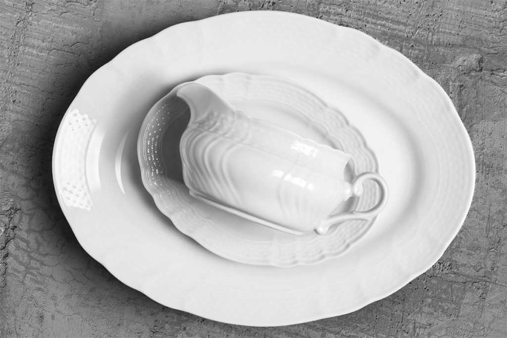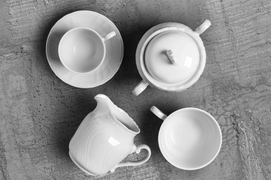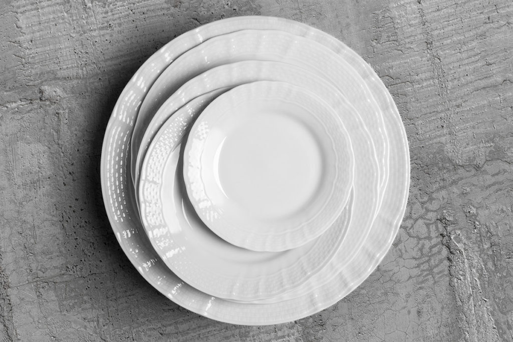 Una línea clásica con guardas texturadas, combinadas con suaves curvas delicadas que recorren las piezas. Estilo atemporal, y fino. Vajilla óptima para el uso cotidiano.