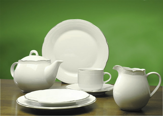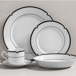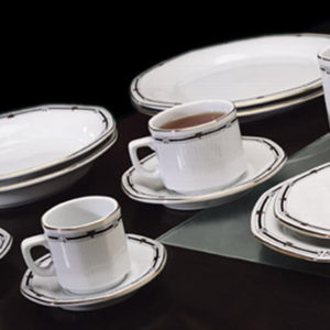 Las curvas suaves de esta línea, acompañadas con una textura táctil y un ribete plateado, con gran versatilidad para ambientaciones elegantes y rústicas. El ribete plateado resalta el borde delicado de los platos, con un ala ancha que luce la fina textura.