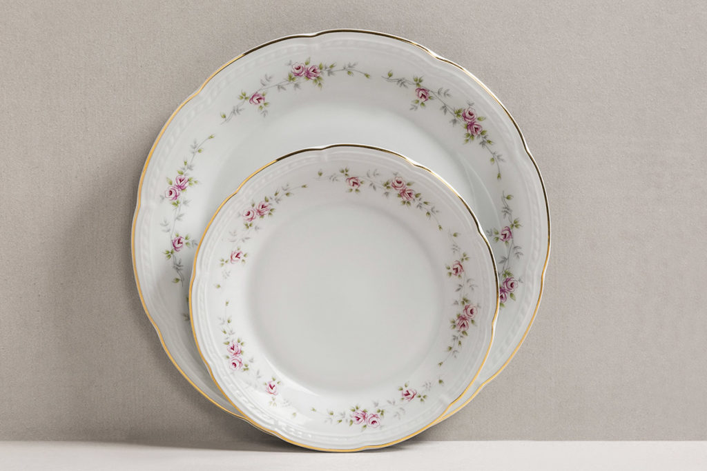 Colores suaves y acentos de color delicados, en conjunto con una textura táctil y un reborde de oro.