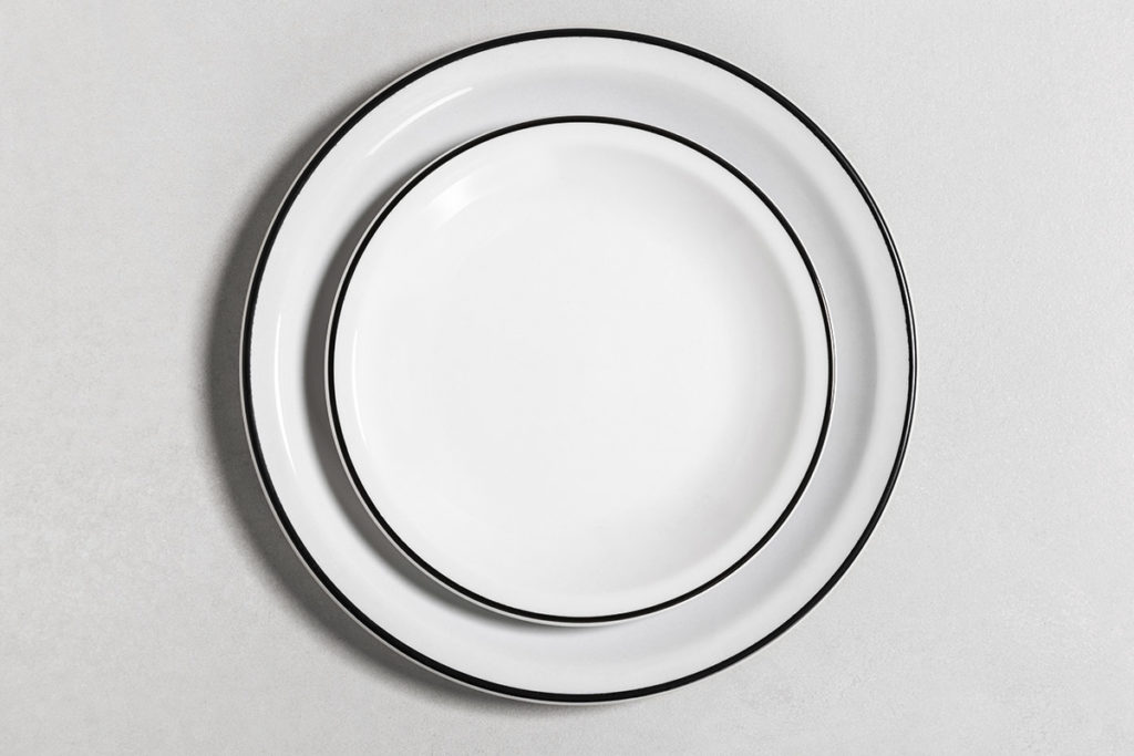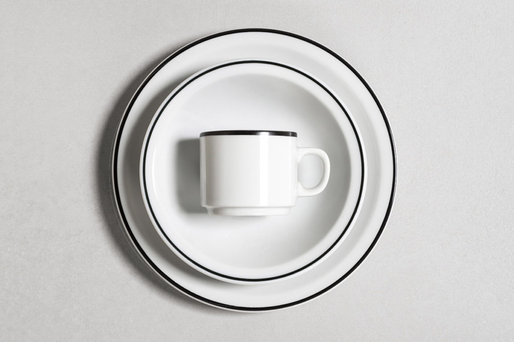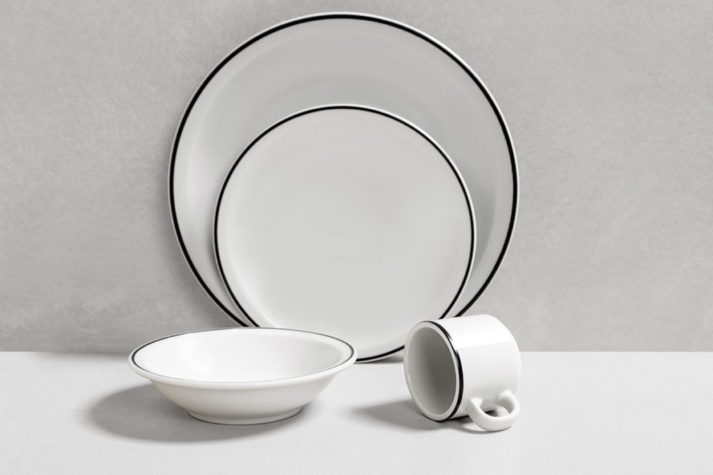 Un estilo moderno y despojado, con un trazo fino que rodea los bordes de la piezas. Este diseño con tazas apilables, es práctico para todos los días, y fácil de combinar para vestir una mesa para ocasiones mas formales.