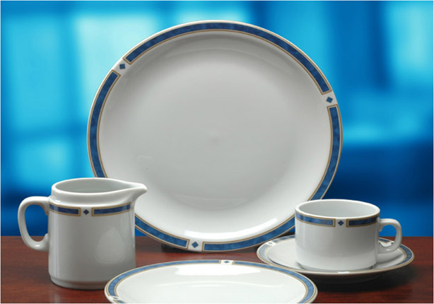 Un trazo azulado acompaña los bordes de las piezas intercalado con forma de rombos, con un diseño apilable, práctico para el guardado.